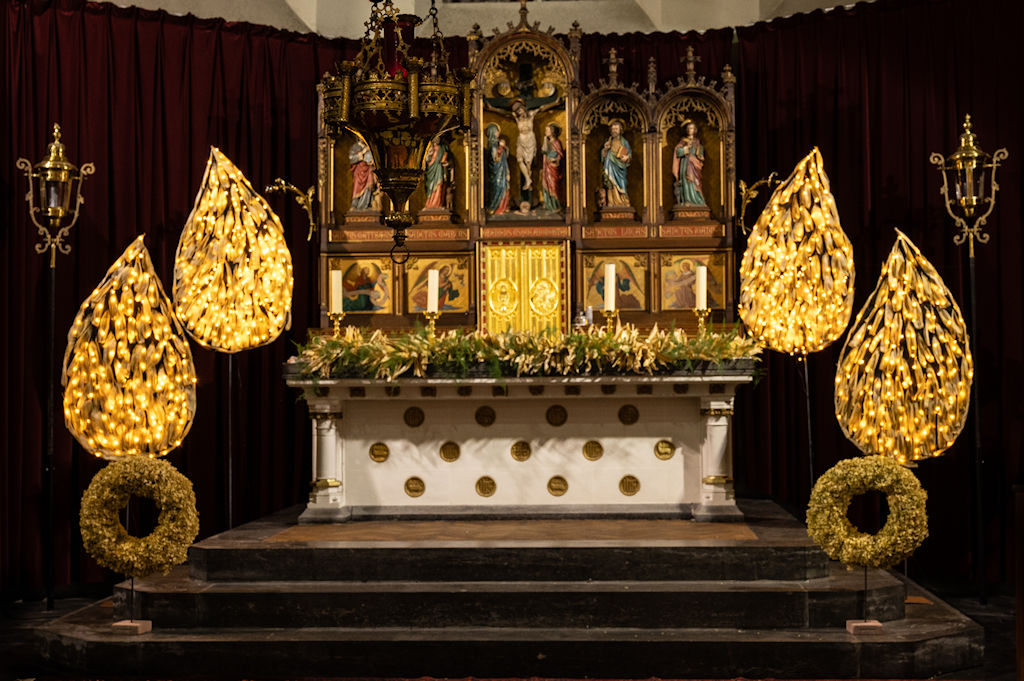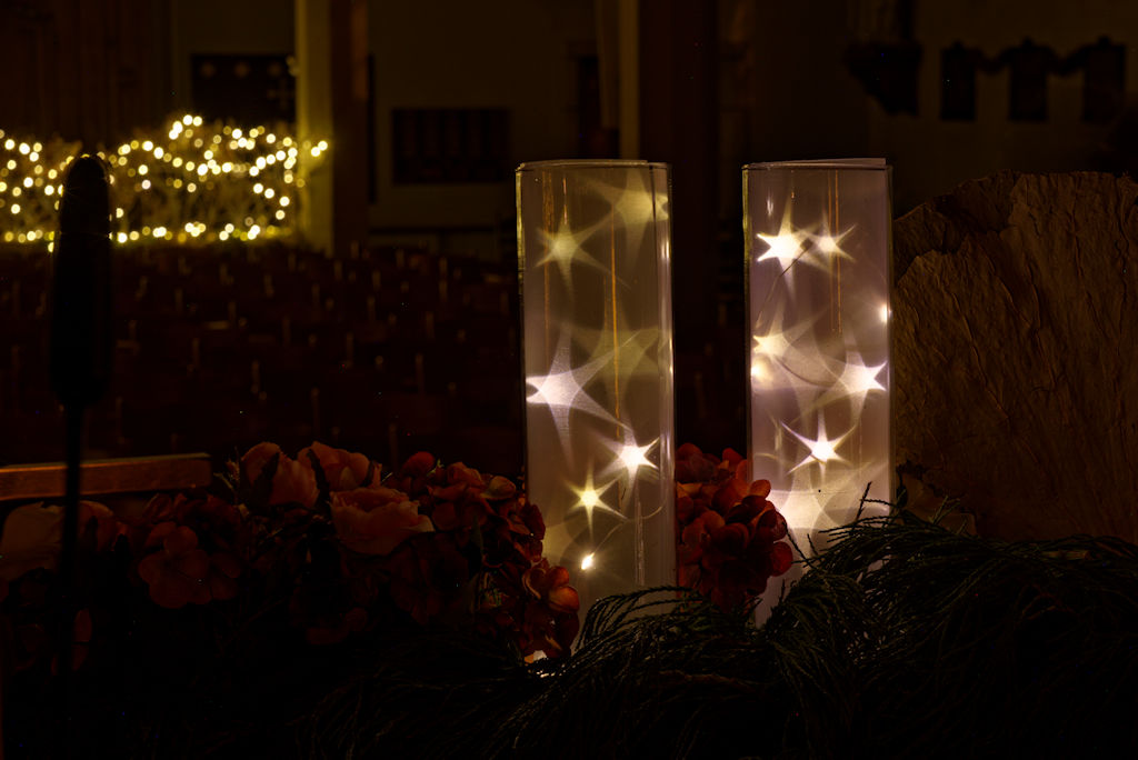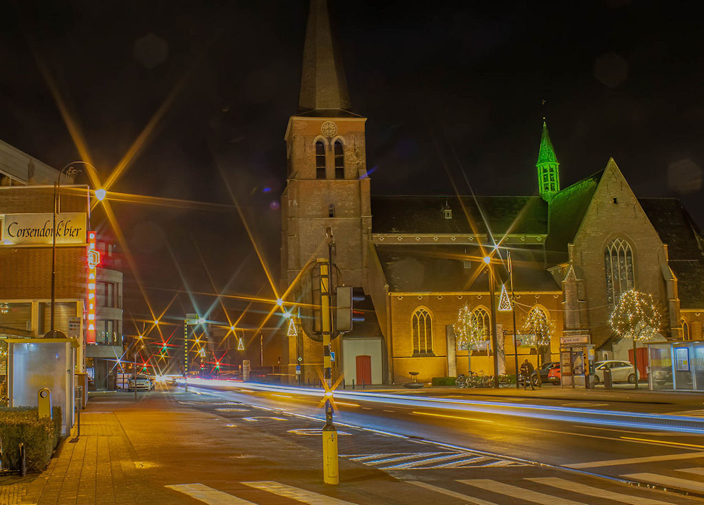 We mogen die avond in de versierde kerk ook fotograferen, waar men speciaal voor ons de vele lichtjes aansteekt, bedankt hiervoor. Daarna trekken we Dessel centrum in, het is te zeggen, de markt en omstreken is ons doel. Een pintje als afsluiter hoort er natuurlijk ook bij.