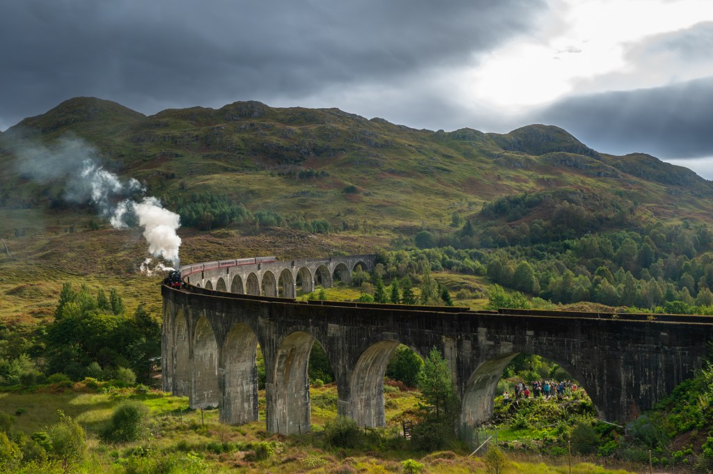 Foto genomen in Glenfinnan Schotland. Na een half uurtje wachten kwam de trein van Harry Potter eraan, de zon brak juist op dat moment door.